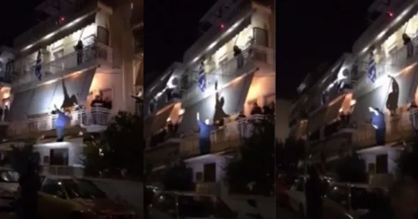 Έτσι λοιπόν το βράδυ του Σαββάτου σε περιοχή της Αθήνας οι κάτοικοι βγήκαν στα μπαλκόνια και επιδόθηκαν σε χορευτικές φιγούρες, με ορισμένους να χειροκροτούν και άλλους να πετούν τις γνωστές σε όλους… χαρτοπετσέτες!