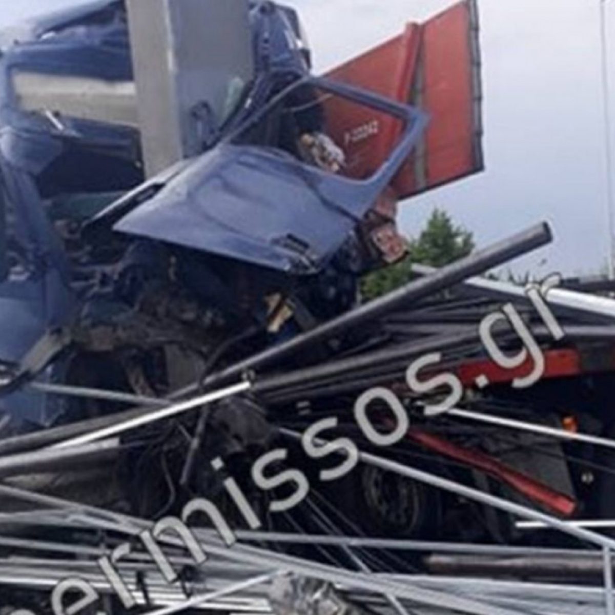 Στην προσπάθειά του να τους αποφύγει οδηγός άλλου φορτηγού έπεσε πάνω σε κολόνα και ένα ΙΧ που ερχόταν ακριβώς από πίσω να πέσει πάνω στο φορτηγό και να διαλυθεί.