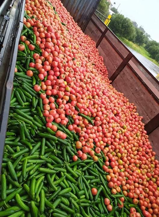 Εκεί λοιπόν σήμερα αποφασίστηκε να πεταχτούν στα σκουπίδια λαχανικά 200.000 κιλών λόγω έλλειψης διαθεσιμότητας.