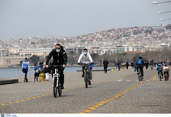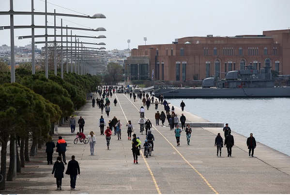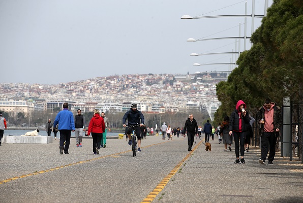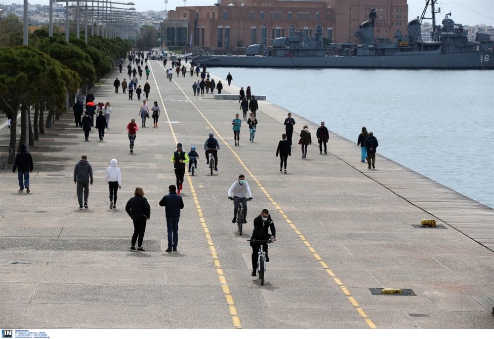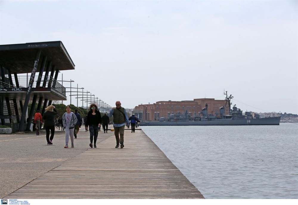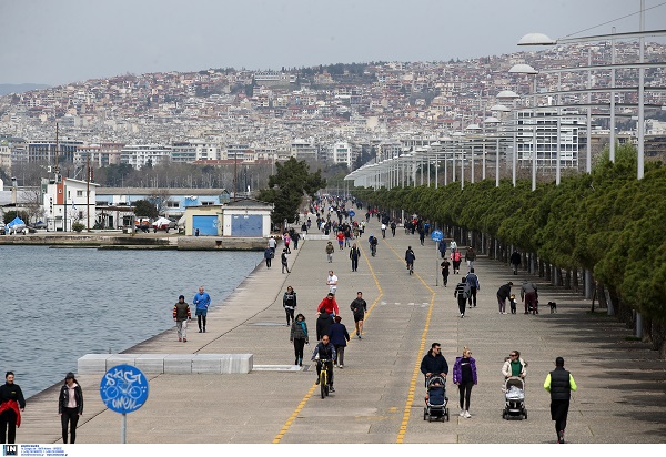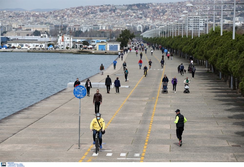 Οι καιρικές συνθήκες το επέτρεψαν και πολλοί Θεσσαλονικείς όλων των ηλικιών βγήκαν για την Κυριακάτικη τους βόλτα στη Νέα Παραλία της πόλης.
